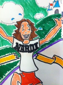 But support did not come just in the form of donations! There was the co-worker who got just as excited as I did each time I completed one of my long runs, and my friend April who stopped by my work the afternoon I was leaving for the race and dropped off a card she drew herself: