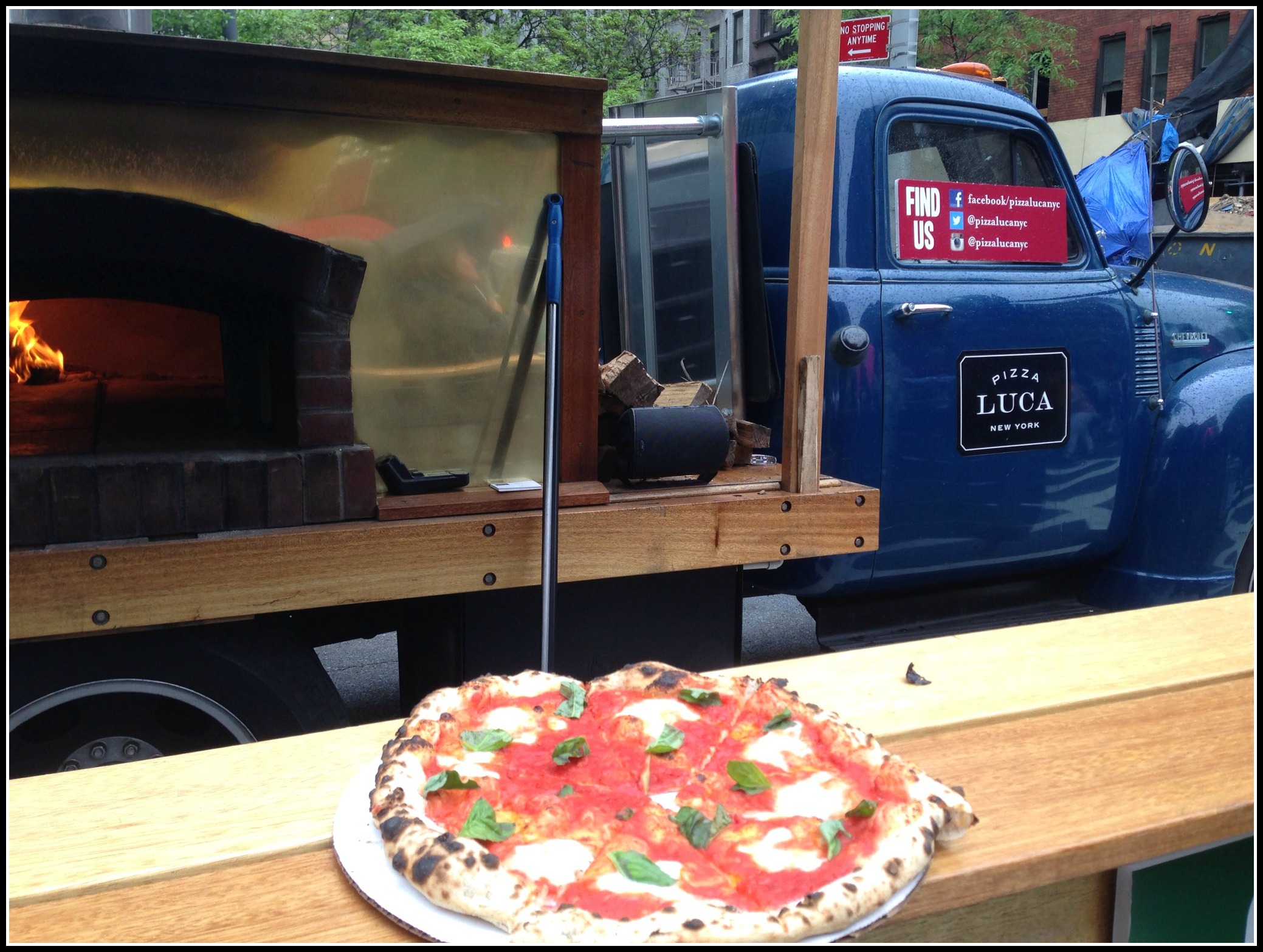 Yes, this is a truck with a BRICK OVEN PIZZA STOVE on the back.