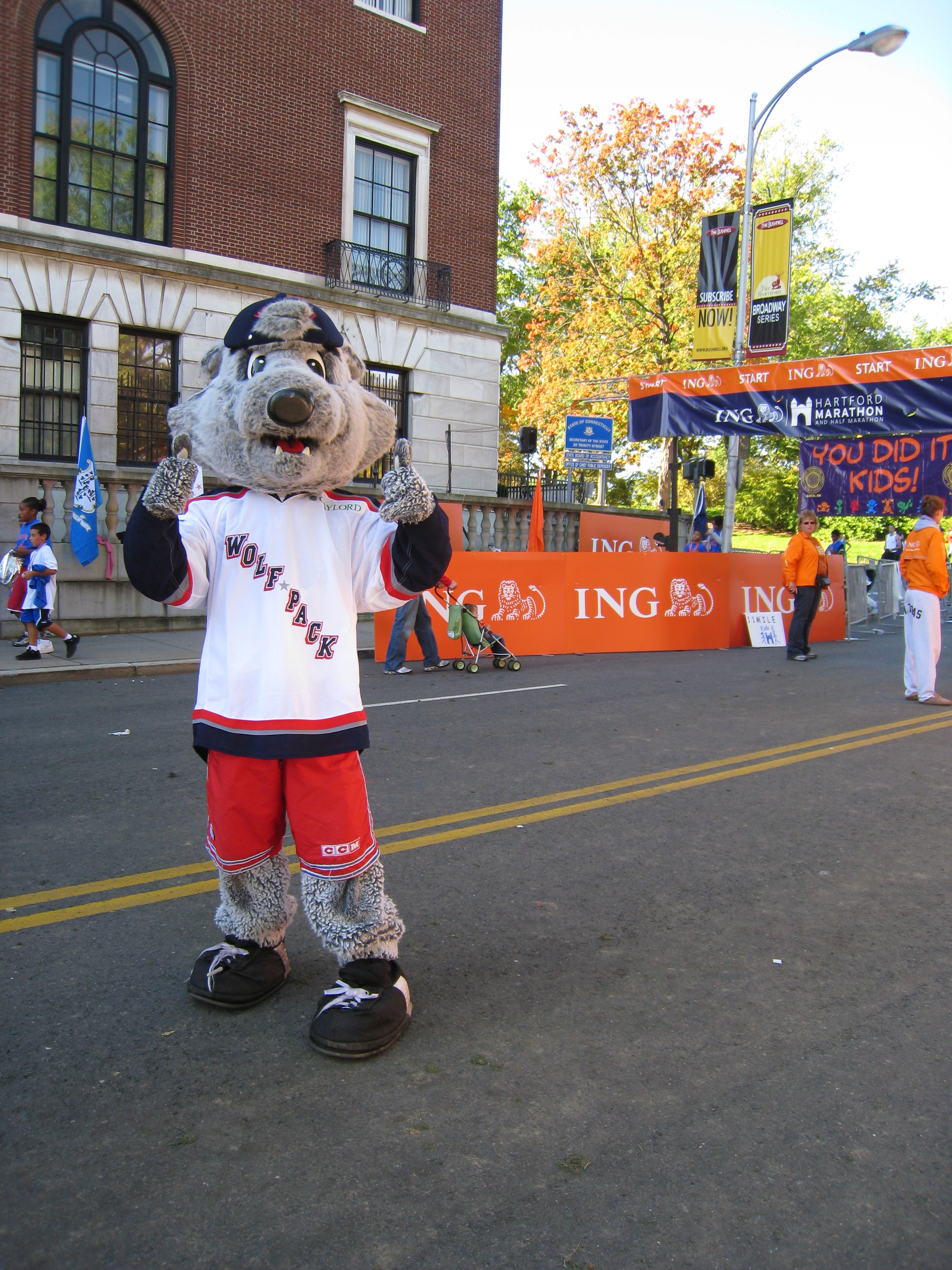 Sonar the Wolf Pack Mascot at the 2009 Hartford Marathon